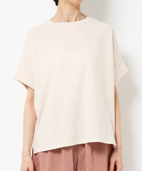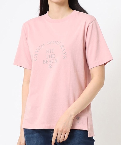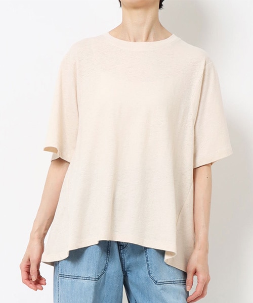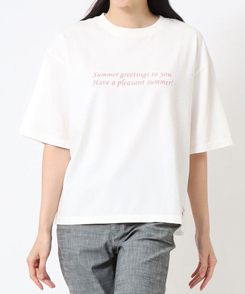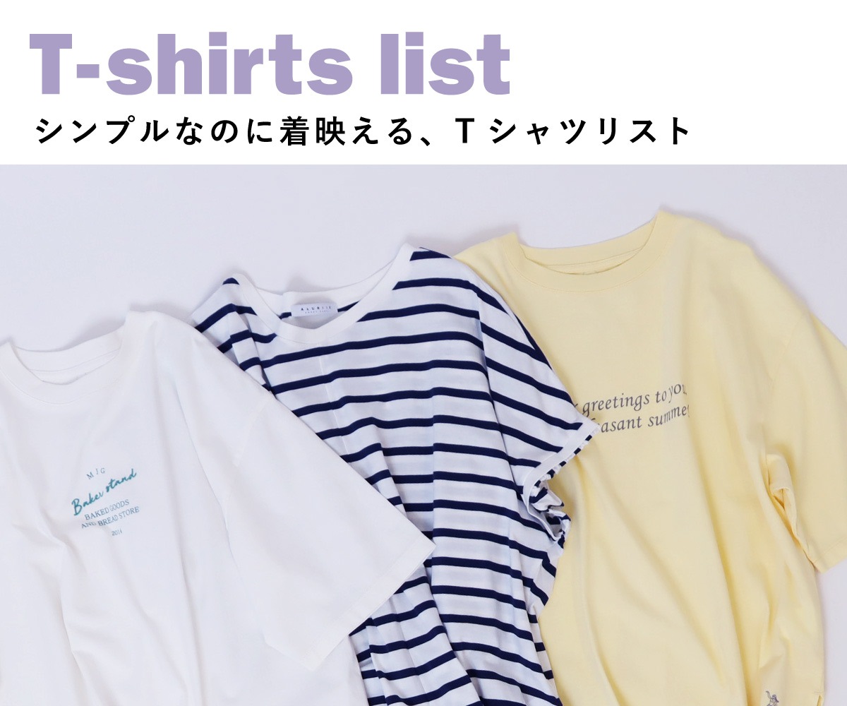 ロゴプリントもシンプルなものから柄プリントまでイメージ様々。無地Tは夏の天然素材をセレクトして、大人のこなれ感をプラスした着こなしに。