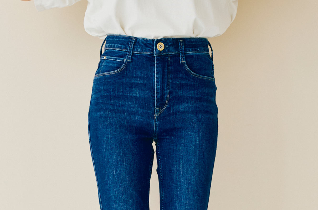 美しいシルエットを両立するミセスジーナのオリジナルデニム。