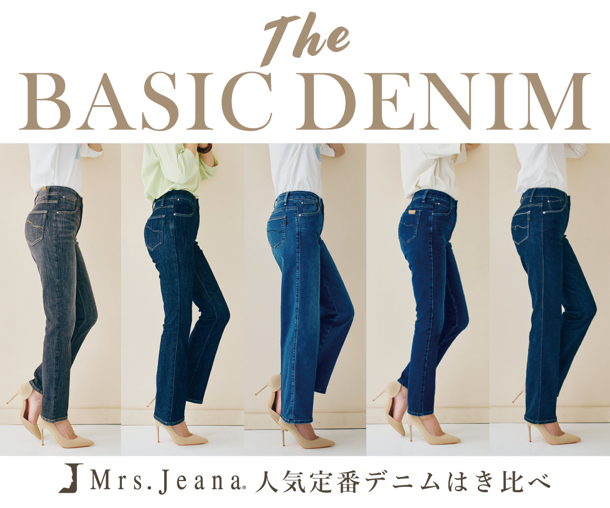 今回はミセスジーナの人気定番デニム5型をはき比べ。